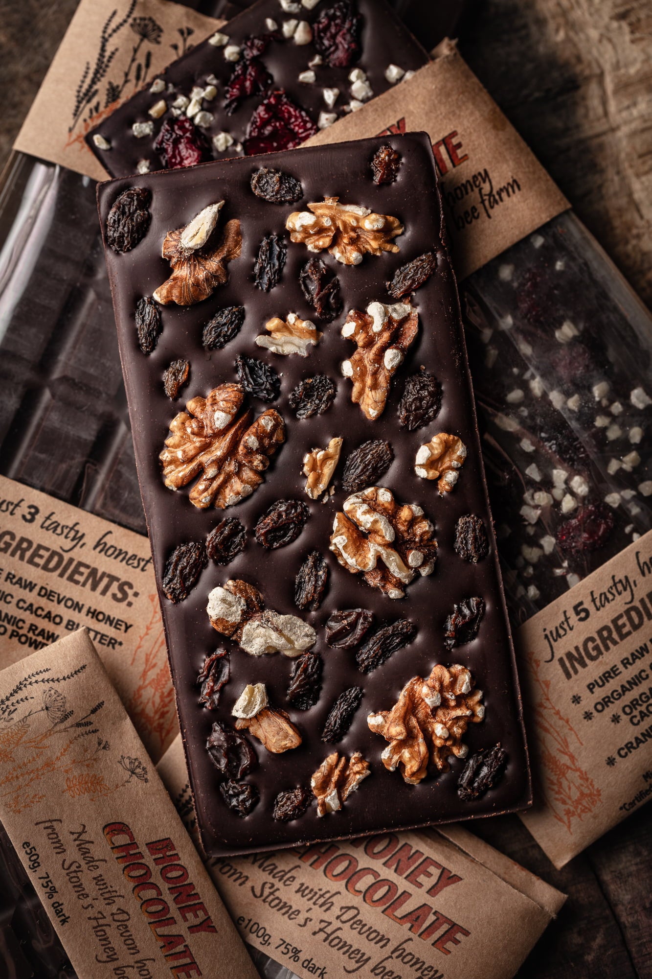 1 Bar of Honey Chocolate with Raisin and Walnut – made with Stone’s Honey 100g